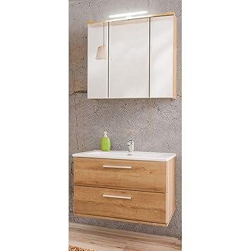Badezimmer Set 2 Bahia Mit Waschbecken Eiche Riviera Honig