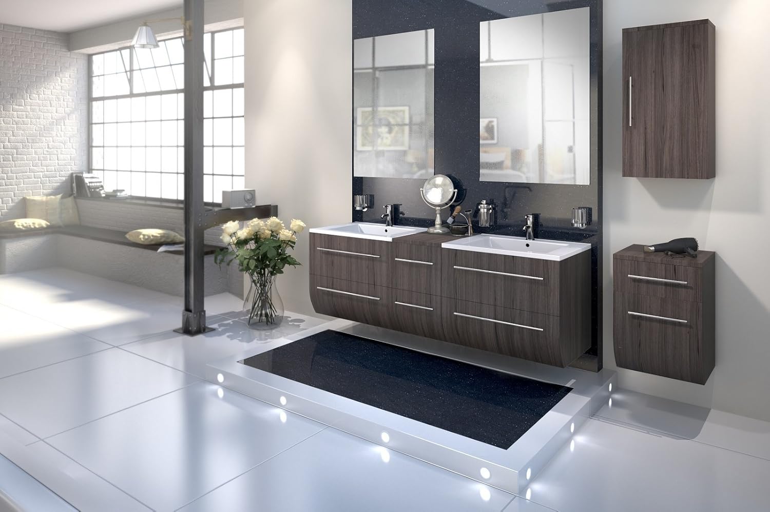Mispa C Badezimmer Badmobel Komplett Set Inkl Hochschrank Dunkelbraun Holzoptik 100cm Led Beleuchtung Softclose Technologie Waschbecken