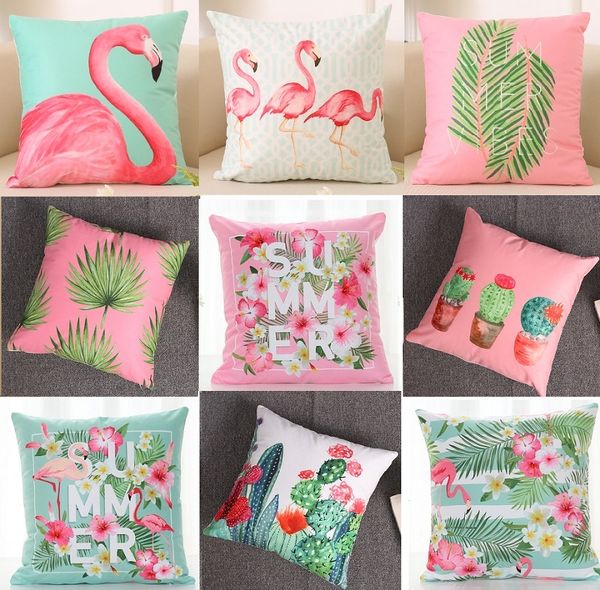 Grosshandel Sommer Blume Kissenbezug Flamingo Vogel Tropische Palme Kissenbezug Weiche Kissenbezuge 40x40 Cm Kinder Favor Schlafzimmer Sofa Dekoration