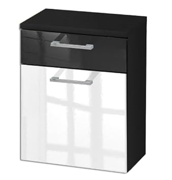 Badezimmer Unterschrank Denver222 Hochglanz Schwarz Weiss