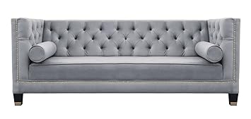 Grau Elegante 2 Sitzer Nieten Samt Sofa Chesterfield Amazon