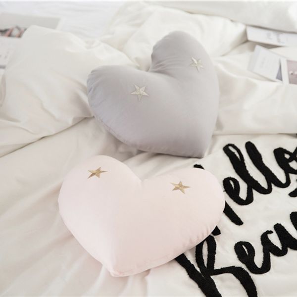 Grosshandel 40 45 Cm Rosa Grau Baumwollgewebe Mit Stern Stickerei Weiche Herz Kissen Sofa Dekokissen Ruckenkissen Mit Fullung Von Lihualin033 13 27