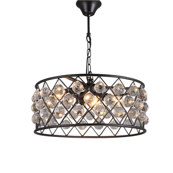Grosshandel Moderne Vintage Industrial Design E27 Schwarz Eisen K9 Kristall Runde Fuhrte Pendelleuchten Leuchten Fur Loft Esszimmer Schlafzimmer
