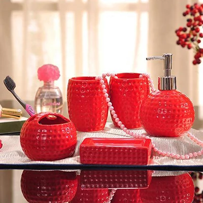 Us 55 99 20 Off Porcelain Bathroom Sets Ceramic Golf Ball Shape Dimpled Grain Design White Red Glaze 5pcs Set Accessories Bathroom Sets In