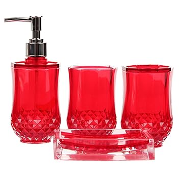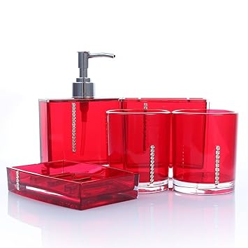 Yiyida Luxus Acryl 5 Tlg Badezimmer Set Bad Accessoire Set Wc Set Rot