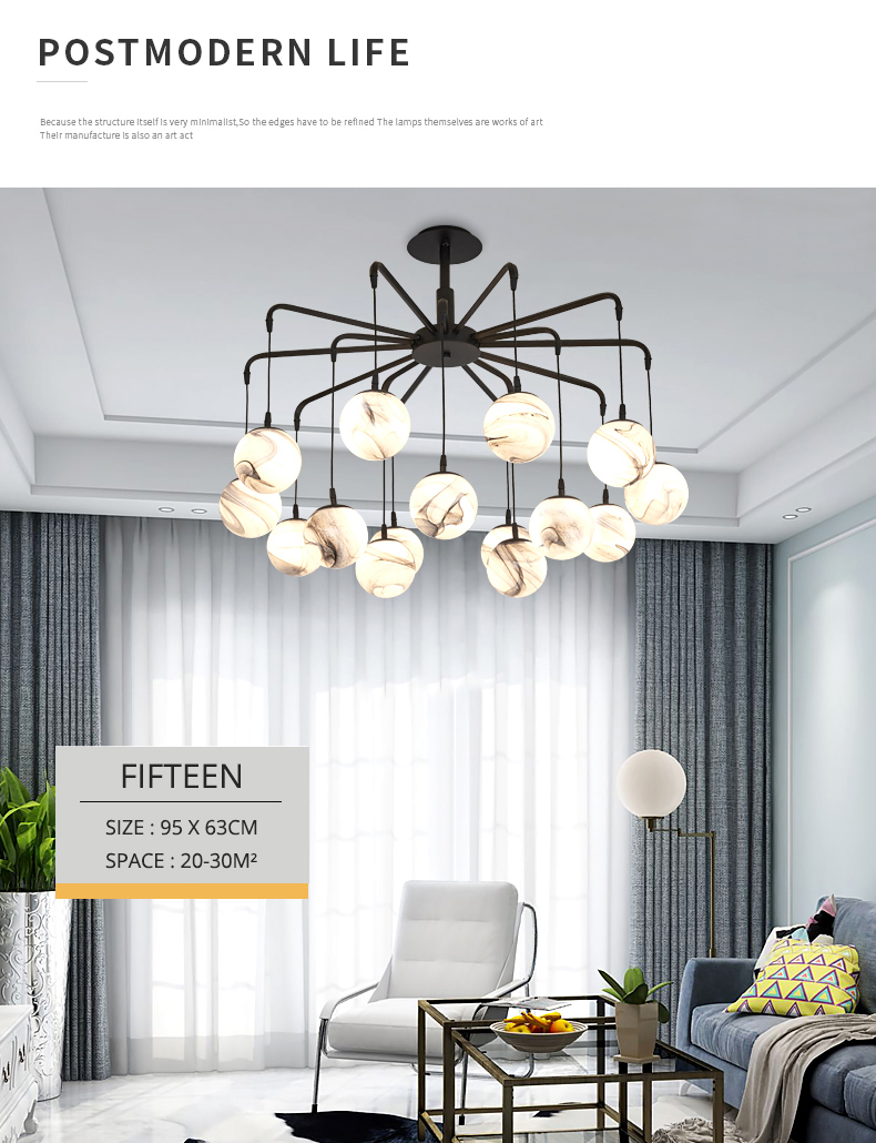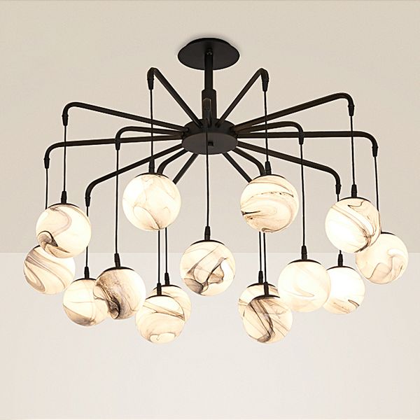 Grosshandel Grosshandel Post Moderne Led Kronleuchter Nordic Dekor Beleuchtung Wohnzimmer Schlafzimmer Eisen Glas Lampe Spinne Stein Muster Schwarz