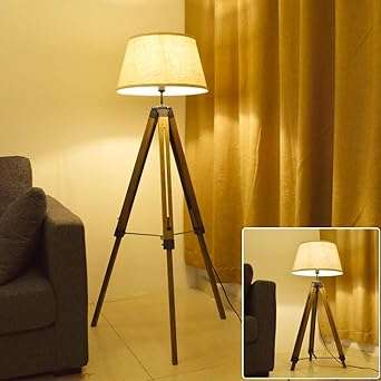 Dllt Skandinavische Stehlampe Modern Wohnzimmerlampe Hohenverstellbar Stehleuchte Holz Stativlicht Schlafzimmerlampe Vintage Lampenschirm Aus Leinen