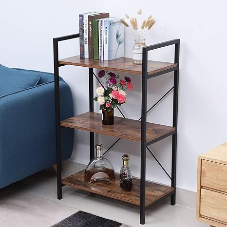 Greensen Kuchenregale Metall Standregal Mit 3 Ablagen Bucherregal Im Vintage Design Badregal Holz Lagerregal Multifunktionales Regal Fur Wohnzimmer