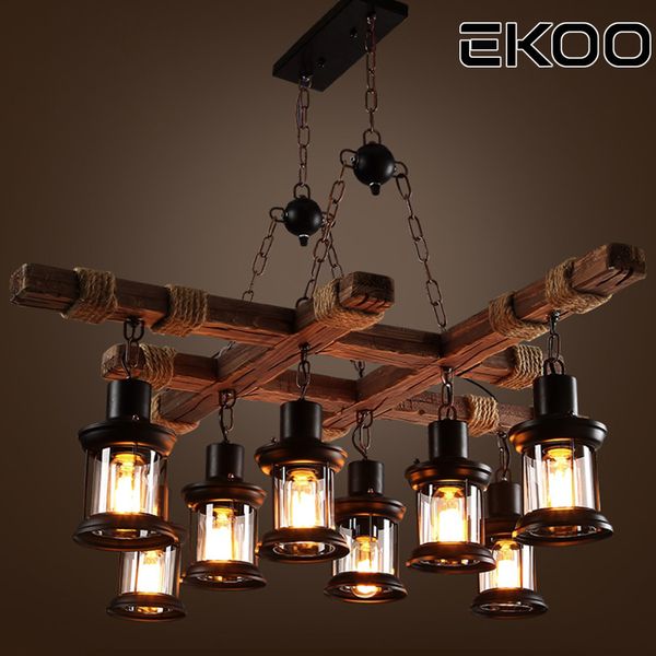Grosshandel Ekoo 8 Licht Vintage Industrie Retro Holz E27 Kronleuchter Eisen Lampe Industrielle Rustikale Licht Fur Restaurant Bar Wohnzimmer Von