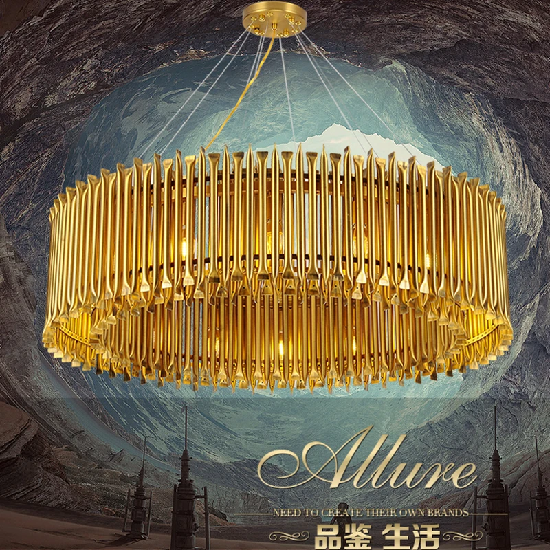 Us 1610 7 9 Off Aluminiumlegierung Gold Anhanger Leuchtet Esszimmer Pendelleuchte Moderne Lampen Fur Hauptbeleuchtung Hohe Decken Wohnzimmer