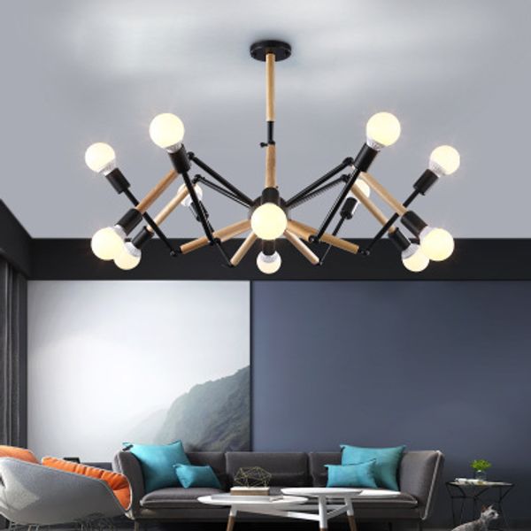 Grosshandel Spinnen Pendelleuchten Industrie Hangend Moderne Lampen Licht Adjustable Nordic Retro Wohnzimmer Loft Kuche Holz Lampe Von Huxiaoan
