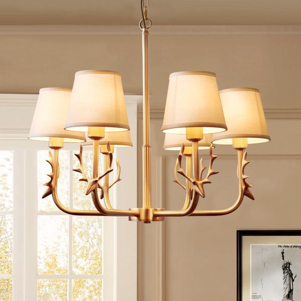 Grosshandel Moderne Kupfer Geweih Kronleuchter Stoff Lampenschirm Led Lampe Fur Schlafzimmer Esszimmer Wohnzimmer Kronleuchter Hauptbeleuchtung F080