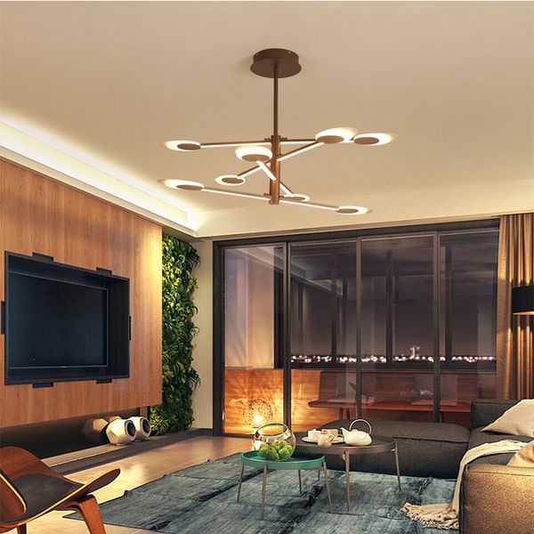 Grosshandel Led Kronleuchter Nordic Kreative Aluminium Led Restaurant Wohnzimmer Kronleuchter Braun Beleuchtung Lampen Moderne Rc Dimmbare