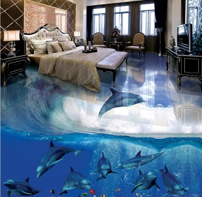 Lhdlily Benutzerdefinierte 3d Boden Tapete Ozean Delphin