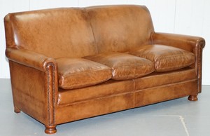 Details Zu Rrp 3250 Tetrad Prince Three Seater Brown Leather Sofa Feather Filled Cushions
