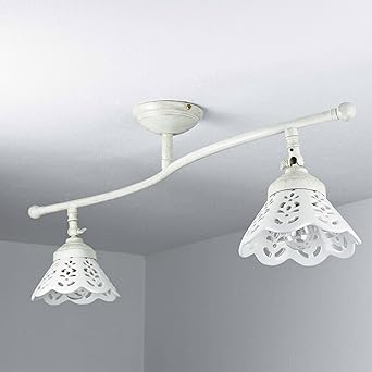 Deckenleuchte Shabby Chic Weiss Messing 2x E27 Max 60w Lampe Decke Landhaus Wohnzimmer Rustikal Deckenlampe Schlafzimmer